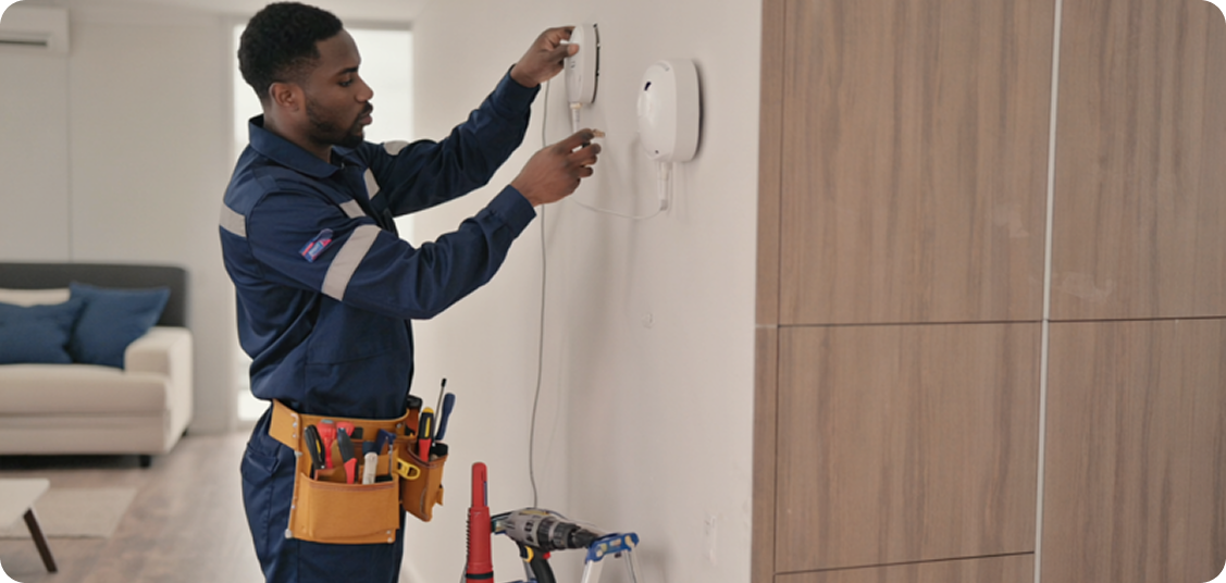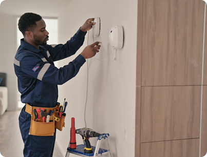 A CO alarm should be placed on the wall or ceiling, at least one to three metres from a potential CO source like a boiler or fire. It should be positioned at breathing height and kept away from drafts or corners. Our engineers install alarms in locations that follow manufacturer guidance and UK best practice to ensure early detection.